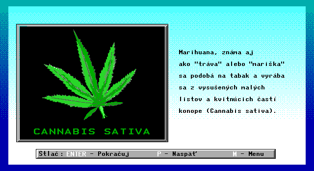 Slovenská verzia amerických programov prof. Barbary Thomas, University of Iowa určených pre záujemcov od 13 rokov. Programy oboznamujú zasvätenou formou so základnými faktami a tom ako a prečo je dobré sa drogám vyhnúť.Formou textov, obrázkov, otázok i testov !
